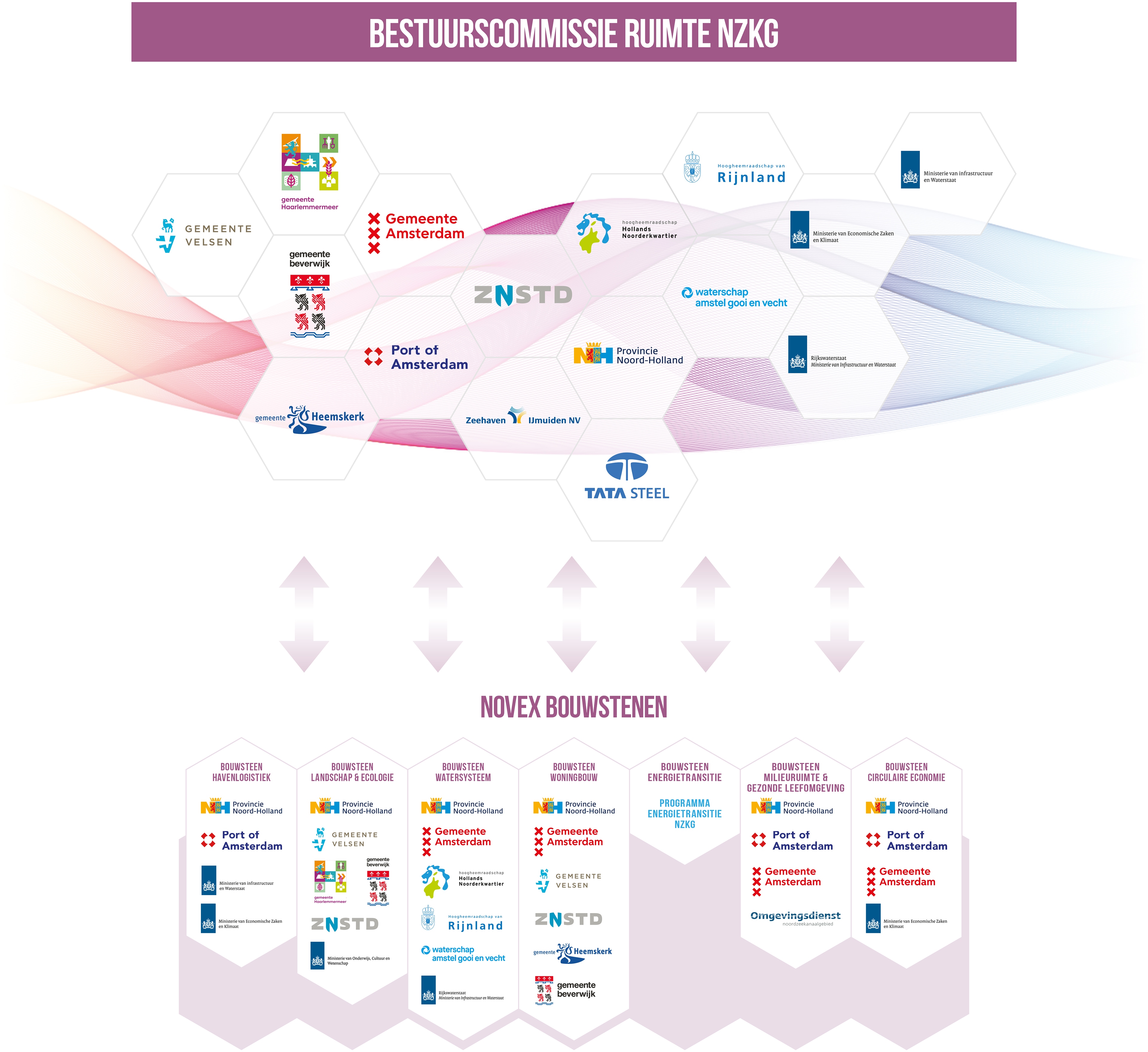 In addition to supervising the joint regional objectives, the BPF NZKG is also a close-knit administrative network. Participants in the new BPF NZKG take comprehensive social-economic responsibility for the physical space and work jointly towards a renewed shared vision of the North Sea Canal area. They are a physical component or the competent authority of the area.