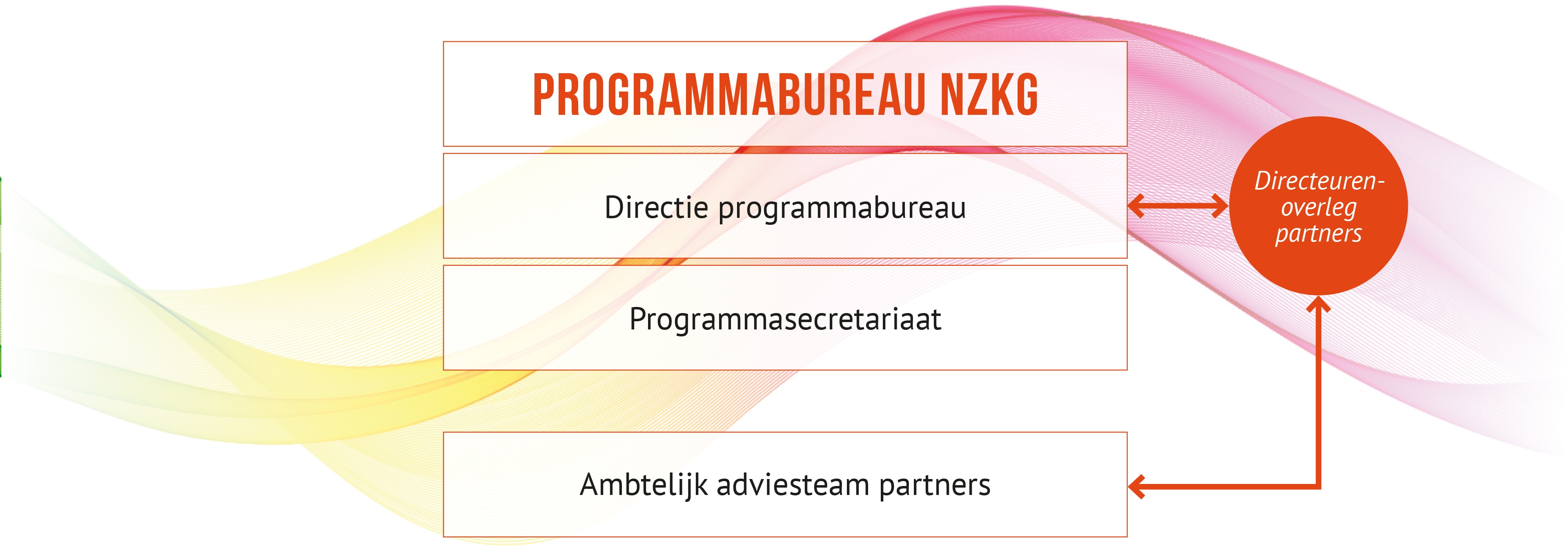 The Executive board of the NZKG foundation supervises the business operations of the NZKG Programme Office and is responsible for its financial statements. The executive board of the foundation appoints the management board, on the recommendation of the BPF NZKG, and decides on the multi-year budget and annual plan. The BPF NZKG appoints its members from the members of the executive board of the foundation. The executive board consists solely of public members. The Province of North-Holland also appoints the chair of the foundation’s executive board.