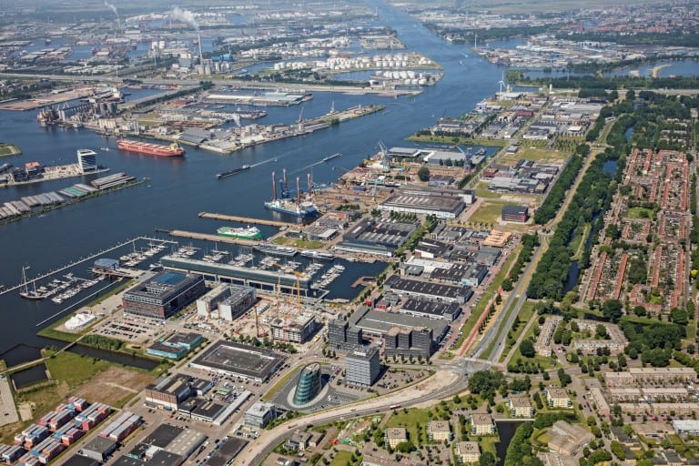 Luchtfoto van bedrijventerrein De Pijp-Noord in de IJmond.