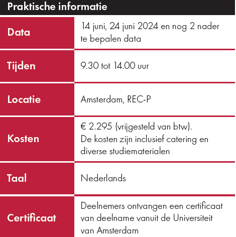 De masterclass wordt aangeboden door de UvA Academy en is ontwikkeld in samenwerking met de Hogeschool van Amsterdam (HvA). Het complete programma vind je in deze factsheet.