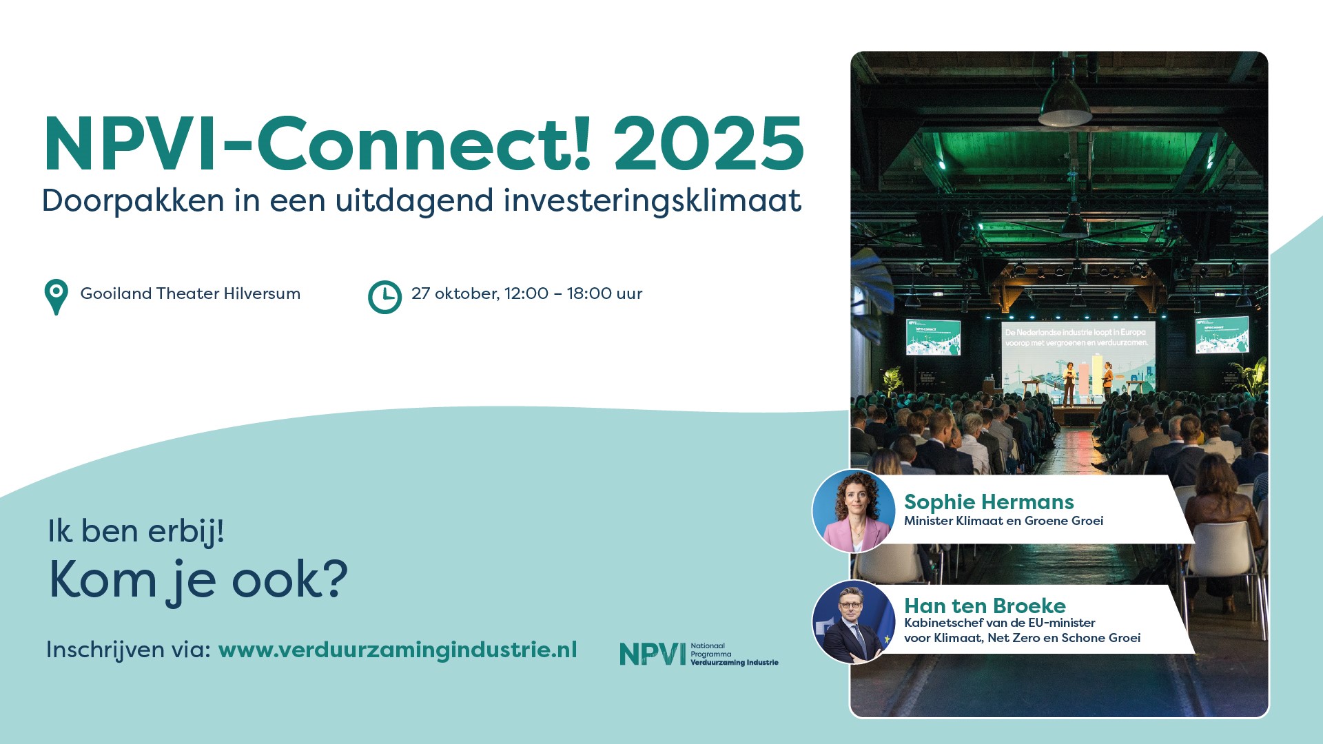 Schreef u zich al in voor het NPVI Connect! 2025 - het congres over de verduurzaming van de Nederlandse industrie, georganiseerd door het Nationaal Programma Verduurzaming Industrie (NPVI)?
