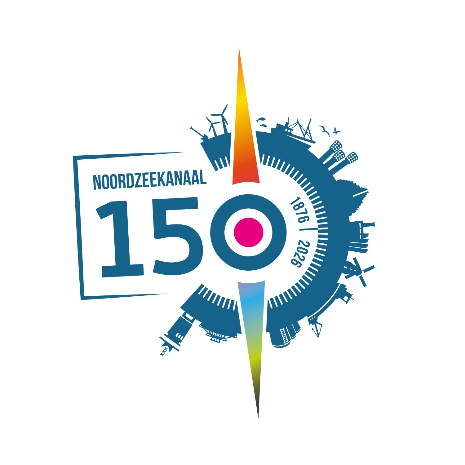 Het speciale logo voor 150 jaar Noordzeekanaal is ontwikkeld als een herkenbaar symbool voor het hele Noordzeekanaalgebied (NZKG). Hierin komen verschillende kenmerken terug zoals: de havens en industrie, recreatie en kenmerken uit steden die eromheen zijn gegroeid. Het logo brengt in één beeld samen waar deze regio al anderhalve eeuw voor staat: verbinding, beweging en gezamenlijke vooruitgang.