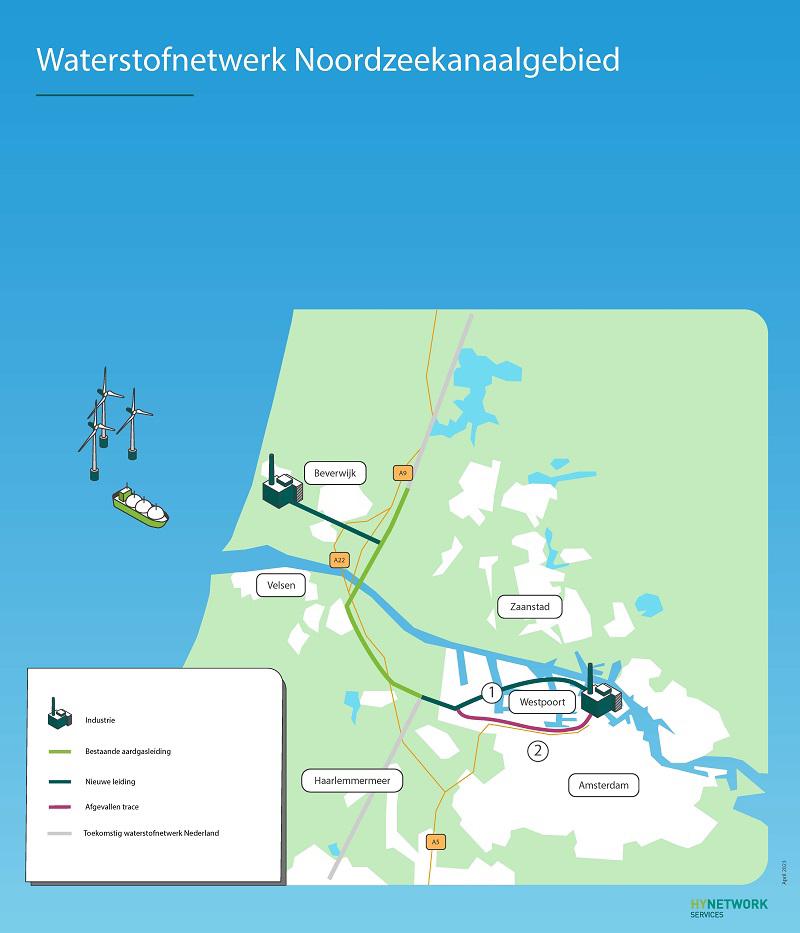 Hynetwork Services (een dochteronderneming van Gasunie) gaat in opdracht van het Rijk een waterstofnetwerk aanleggen in het Noordzeekanaalgebied. Het doel hiervan is dat de industrie in de toekomst op een energiebron over kan stappen die beter is voor klimaat en milieu. Het netwerk bestaat uit buisleidingen voor het vervoer van waterstof. Het is onderdeel van een landelijk netwerk dat de vijf industrieclusters in Nederland met elkaar en met het buitenland verbindt. Het uitgangspunt voor dit netwerk is het hergebruik van bestaande leidingen die nog in gebruik zijn voor het gastransport. Op plekken waar dit niet mogelijk is, komen leidingen onder de grond. Ook komen er nieuwe bovengrondse installaties.