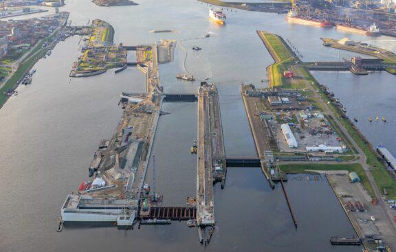 Luchtfoto van het Sluizencomplex in IJmuiden. Foto Topview Luchtfotografie.