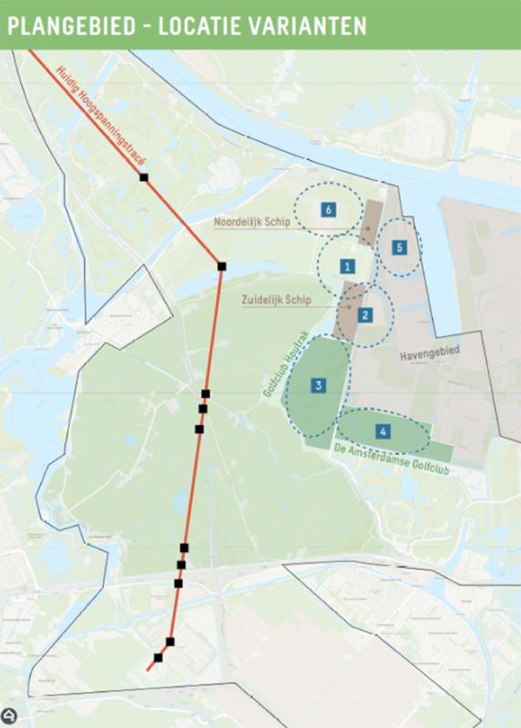 Locatie varianten hoogspanningsstation A9 Zuid.